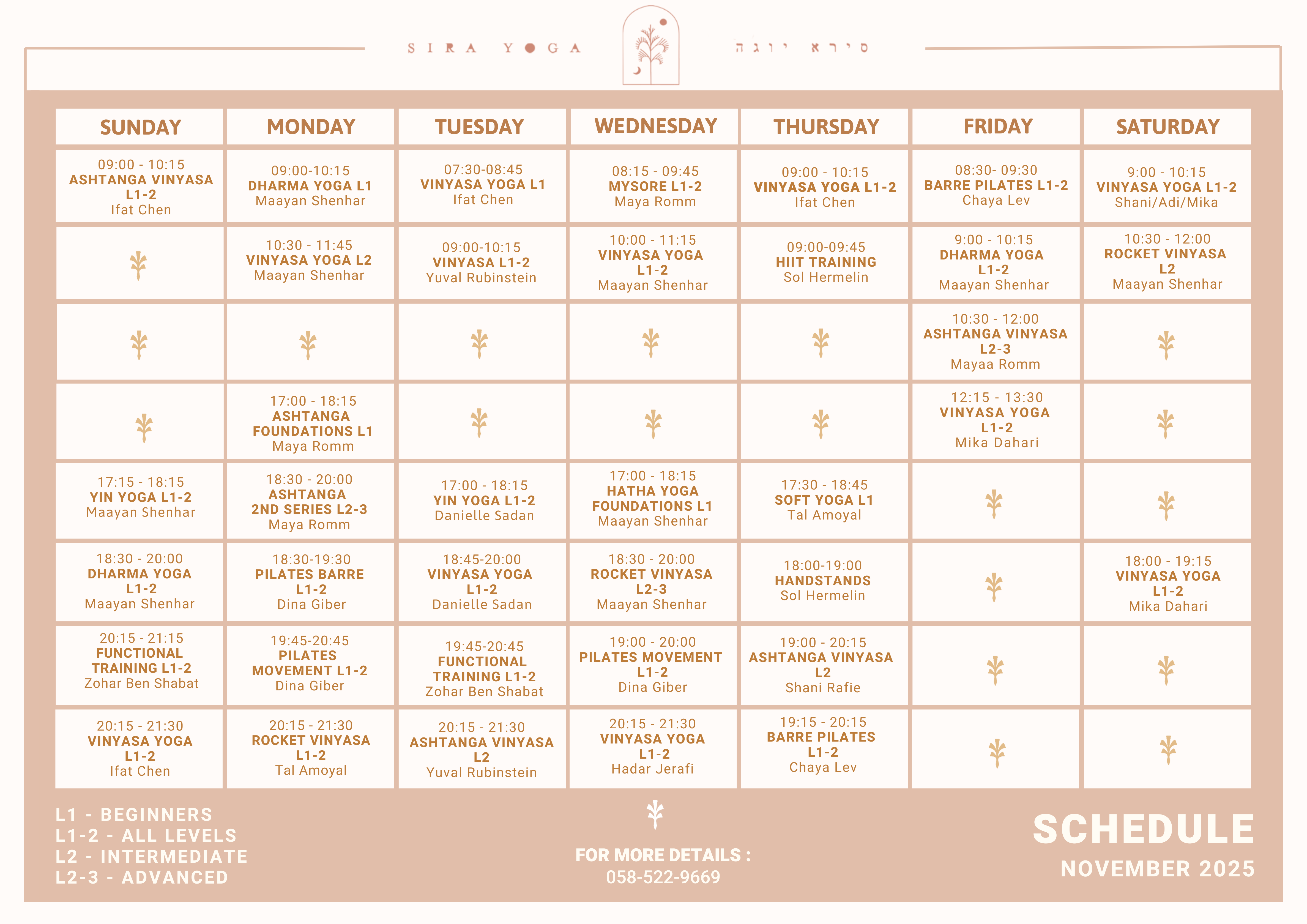 We offer classes in 8 Different Yoga traditions, Mat Pilates, as well as meditation, movement and dance classes.